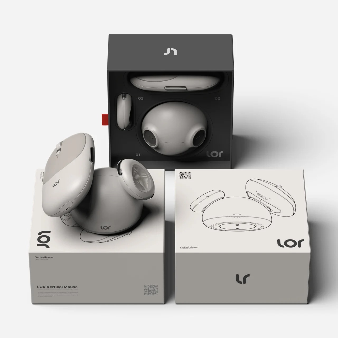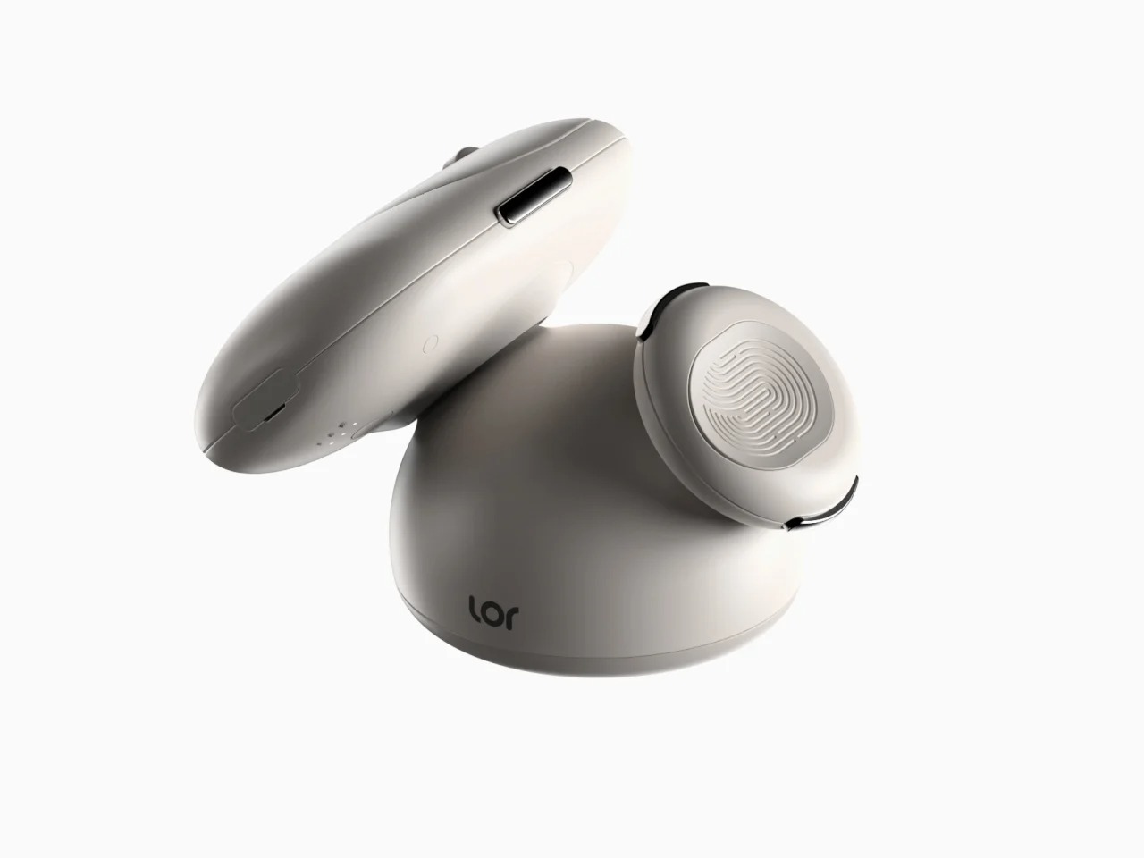 Lor模块化垂直鼠标由设计师Kwon Yong-bin创作,其核心理念是“通过物理重构实现真正的人体工学包容性”。鼠标灵感源于鹅卵石,采用柔和圆润的造型以保护手腕。其最大创新在于可拆分的模块化结构:一个球形底座搭配两个鹅卵石形握把,用户可像组装积木一样,自行将握把安装在底座左侧或右侧,从而快速在左手或右手配置间切换,让同一硬件无缝适配不同惯用手用户。